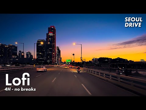 4Hours 4K Lofi Jazz - Night Drive in Seoul Korea 4K #gangnam #hangang #seoul #koreatravel