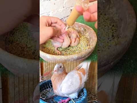 Educational Method: How to Feed Baby Pigeons Without Parents 🕊️🍼 #LoveAndCare #AnimalCare #Pigeon