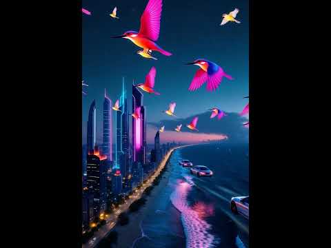 Colorful #kingfishers#flying over a #futuristic#city#shorts #viralshorts#aigenerated#ai #skyscrapers