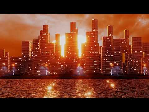Retro Futuristic City With Big Skyscrapers Near Water Screensaver 4K #short #shorts #youtubeshorts