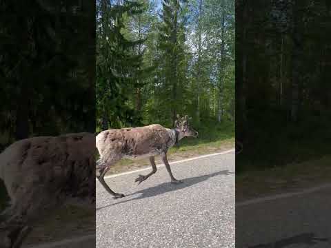 REINDEER on the Road #finland #lapland #reindeer