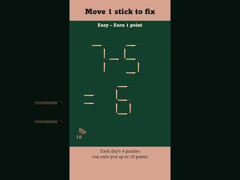 Matchstick Brain Teaser: Move One Stick to Fix. Easy Level.