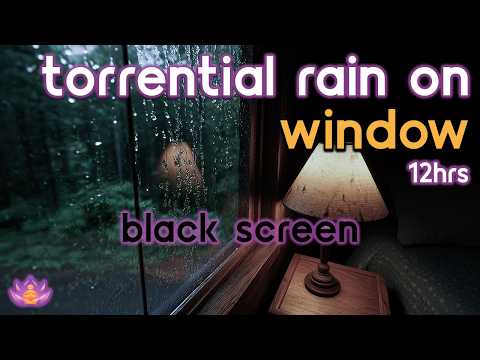 [Black Screen] Torrential Rain on Window – No Thunder | Rain and Wind | Rain Sounds for Sleeping