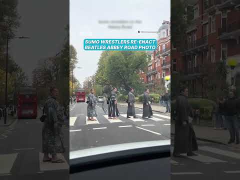 Sumo wrestlers re-enact Beatles' Abbey Road photo