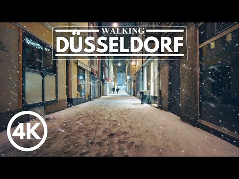 [4K] Winter Snow Walk in Düsseldorf Germany 2021 - Snowy Evening Ghost Town