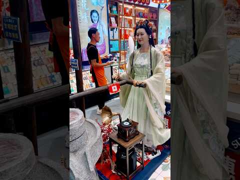 I saw a woman in ancient costume pushing a millstone on the Bund in Shanghai. #shanghai #china