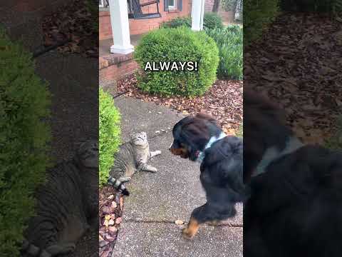 Bernese mountain dog puppy and cat have a love/hate relationship | So funny! #shorts