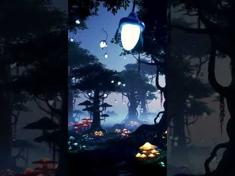 A magical forest with floating lights and glowing mushrooms #gargantua #creativeexperience #magic