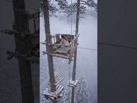 Building a Secret Tree Shelter in Snow 🌨️ (Relaxing ASMR)
