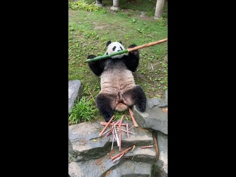 This panda learned this funny expression from his keeper! || panda breaks bamboo #panda #funny #face