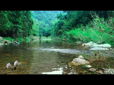 Beautiful sounds of the forest, birds chirping, calming river sound, soothing paradise