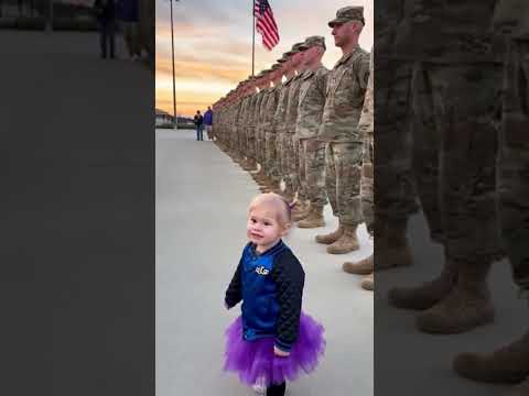 Baby found her daddy in million soliders 🥰 #militaryfamily #viralvideo #soldierdad