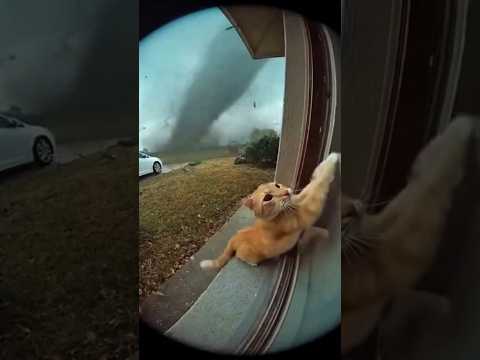 Ring doorbell captured orange cat trapped in tornado #cat #tornado #shorts #trending #securitycamera