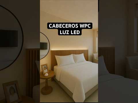 Decoración habitación Cabecero de cama con WALL PANEL WPC, Luz led cálida