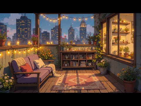 Cozy Balcony with Tokyo Night Rain 🌙 Lofi Notes Drifting into Stillness | For Sleep, Relax & Calm