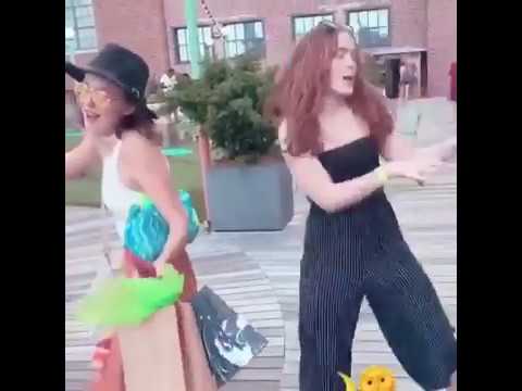 Millie Bobby Brown and Sadie Sink dancing