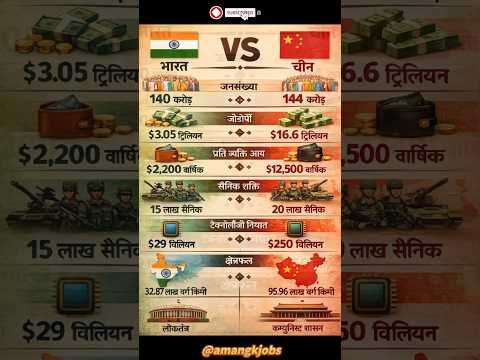 India vs China Comparison 2026 🇮🇳 vs 🇨🇳 | Military, GDP, Population Full Comparison Hindi #shorts