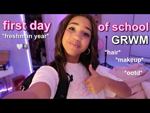 FIRST DAY OF FRESHMAN YEAR GRWM| hair,makeup,mini school haul, ootd🤍📓