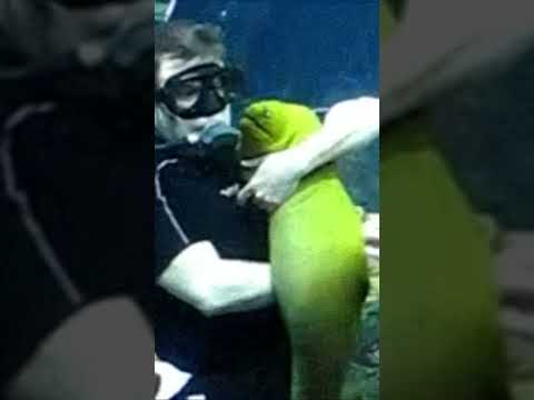 Man pets moray eel and then holds it like a baby #America #Animals #Cute #Eel #Water