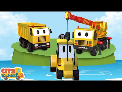 Excavator Falls in the River! Big Bridge Construction Rescue- Excavator,Mixer Truck for kids.