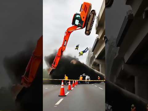 Excavator Falls With Bridge Collapse 😱 Massive Structural Failure #construction #fail