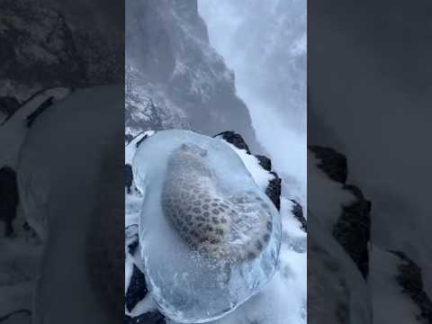 Frozen Snow Leopard Rescued From Solid Ice on Mountain Cliff! 🧊🐆 #Shorts