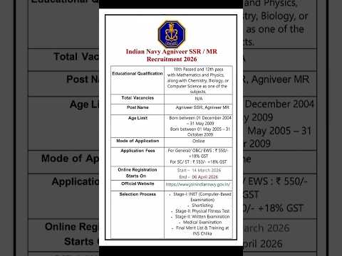 Indian Navy Recruitment 2026 | Navy (Agniveer) MR & SSR New Vacancy 2026 | #navy #army #indainnavy