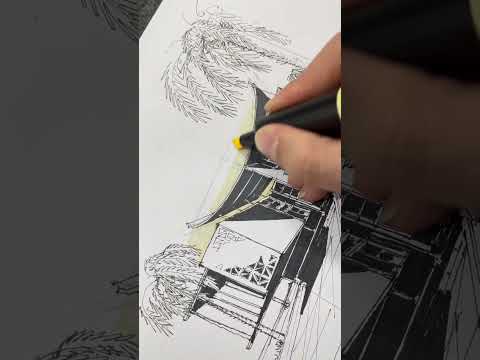 Architectural Drawing and color with marker #sketch #markers #architecture