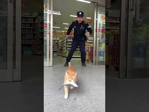 Viral Cat Stealing Fish in a Supermarket #cat #shorts