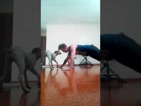 Trying to do push-ups with a dog.