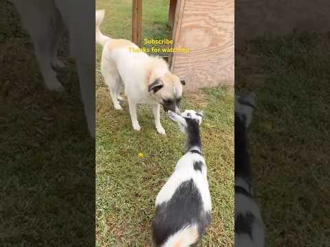 When a Sheep Meets a Dog for the First Time #goat #cutefarmanimal #beautifullgoats #cute