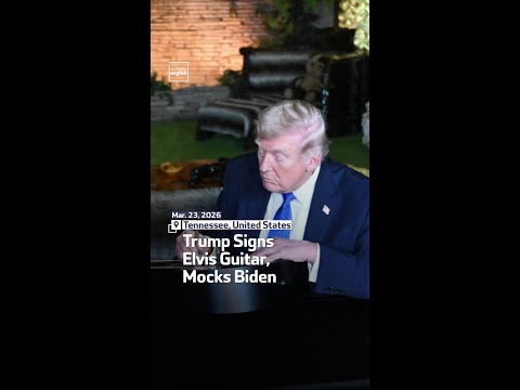 Trump Signs Elvis Guitar, Mocks Biden