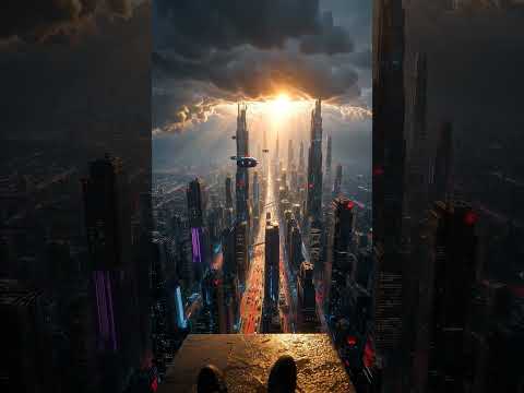 Future Skyline Sunset in the Clouds #scifi #city #architecture #shortvideo #cinematic #cyberpunk