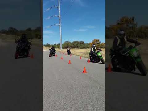 Motorcycle slow weaving control through cones rear brake use first or 2nd gear