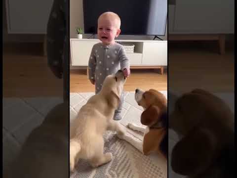Dogs react interestingly when they encounter a crying child🤣🤣🤣dog f