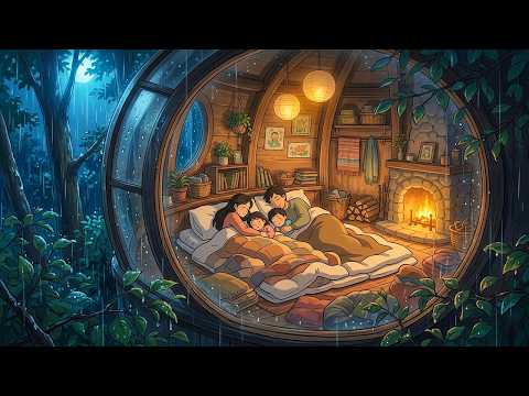 Cozy Rainy Night in a Treehouse: Family Sleeping Together | Ghibli-Style ASMR