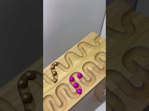 Wooden Marble Run ASMR – Pink & Gold Marbles Drop Into Wavy Track 🟣 #marblerun #asmr #shorts