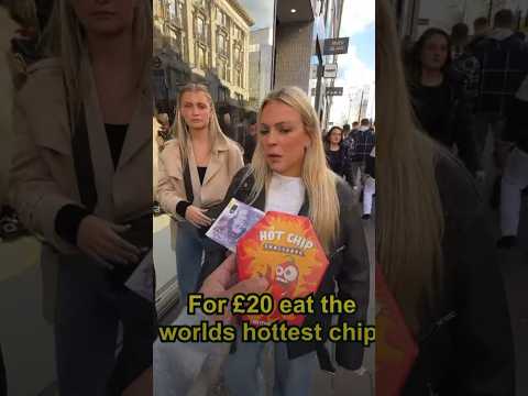 A woman eats the world’s hottest chip for money! Could you do it? #hotchipchallenge #shorts