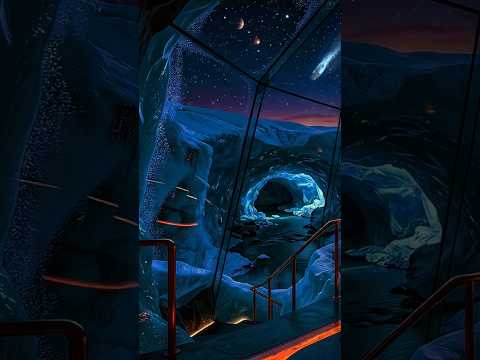 Step into a surreal frozen cave where fire meets ice beneath a glowing cosmic sky. #asmr #fireplace