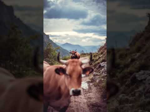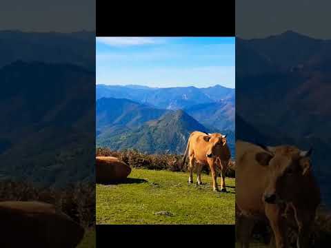 Hiking🚶♂️in the high mountains ⛰️ of Asturias, Spain. Some cows 🐄 to their own. Senderismo y vacas.