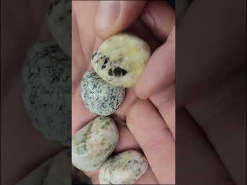 4 Granitoid Pieces Tumbled – One Has Big Black Glassy Chunks (Obsidian?)!