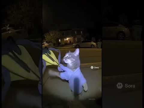 Cat runs from the cops! #ai #sora #cats