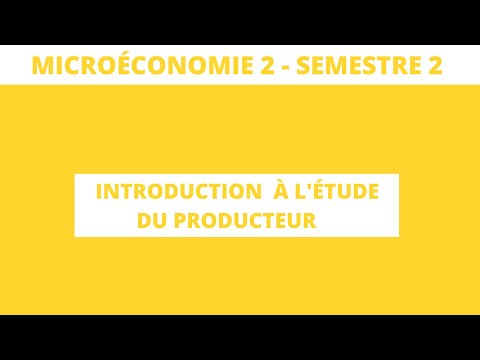 Microéconomie S2 partie 1 " introduction à l'étude de producteur "