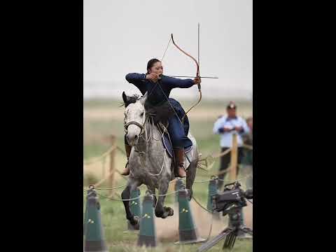 Mongolian Girl riding a horse and shooting arrows #archery #horse #horseriding