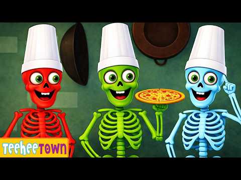Five Skeletons Baking Pizza At A Party | Spooky Scary Songs By Teehee Town