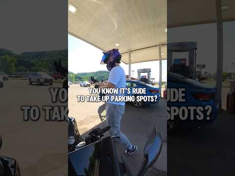Angry woman confronts biker after he pulled into gas station