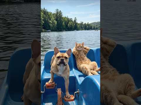 Cat chilling 😎 while bulldog does all the work 🚤😂 #funnyanimals #cat #frenchbulldog