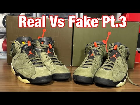 Air Jordan 6 x Travis Scott Olive Real Vs Fake Pt. 3