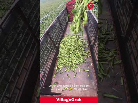 Efficient Corn Harvest: Tractor Loads Fresh Corn into Truck