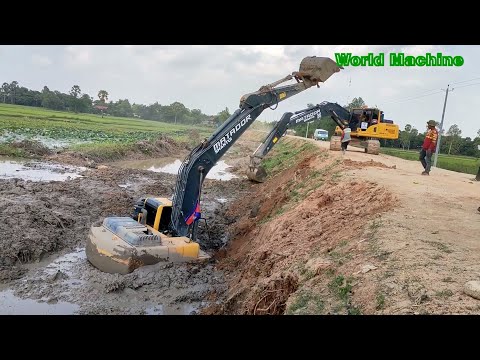 Unbelievable Excavator Accident Sink And Stuck In Deep Mud Recovery By Excavator